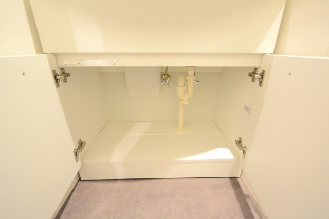 キッチンは上下に収納があり調理道具がたくさん入れられそうです♪シンク下の収納は、スライド式なのでキッチングッズの収納も楽々 (●´∀`)配管を気にせず収納できるので大容量。