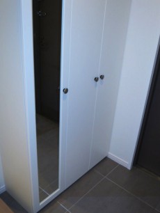 組み合わせが洗練されています。扉板にミラーが使用されていますので、