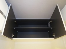 ます。上部に吊戸棚が設置されておりますので、トイレットペーパーのストックや