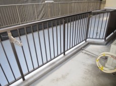 バルコニーに出てみました。となりには大きい建物、そして今は工事中。覆いが