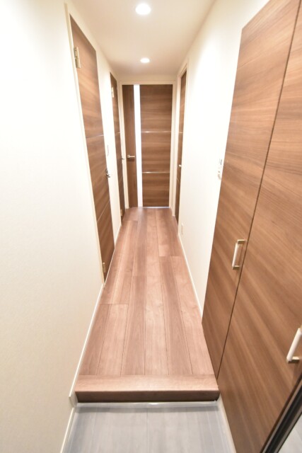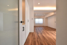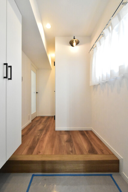 綺麗な木目調の玄関です。フルリノベーションで新築マンションのような雰囲気です。