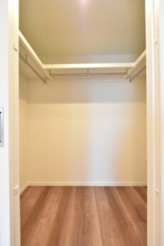 コの字型にバーが設置されていて、ウォークインクローゼットの中で衣替え等の作業ができそうな気がしちゃうほどの広さです(^^)大きい段ボールや衣装ケースを置いてもいいですね。