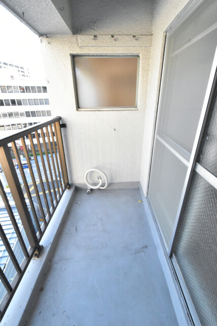 広くはありませんが奥行きがあるので意外とゆったりと感じるバルコニーです。いろいろな所にフックが付いているので紐を張ってお洗濯物を干したり出来るのかもしれません。ただし、マンションによっていろいろ規約があるので要確認です。