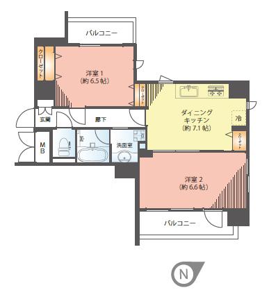 2部屋ある洋室のうち1部屋は廊下側につくられています。
