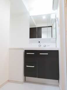 洗面化粧台はお隣にカウンターが設置されており、身支度がしやすそう!