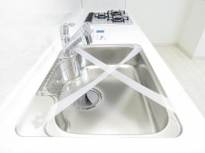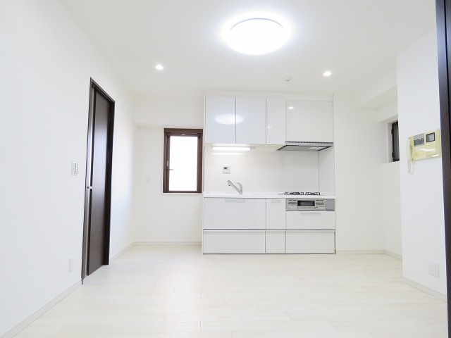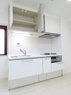 キッチンもお部屋にあわせて真っ白。3口コンロ、浄水器内蔵水栓、収納たっぷりとスペックも◎!横に窓が有るので自然換気が出来るのもうれしいですね。