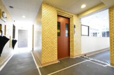 エレベーター周りも、外部廊下もふんだんにタイルが使われています。ちなみにこのマンションの壁面で採用されているタイルの貼り方は馬目地と言います。