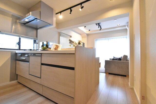 続いてキッチンのご紹介です。明るい木目調で統一されたカウンターキッチンです。