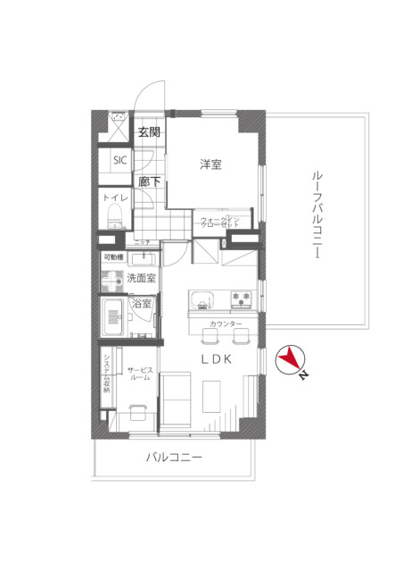 今回ご紹介するお部屋は4階、間取りは1SLDK、専有面積は44.40㎡。シングルまたはDINKSの方にお勧めのお部屋です。特徴はなんといっても広いルーフバルコニー!楽しみですね♪