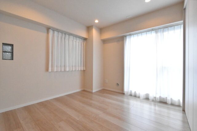 洋室です。外部廊下側とルーフバルコニー側に窓があるためとても明るいお部屋です。