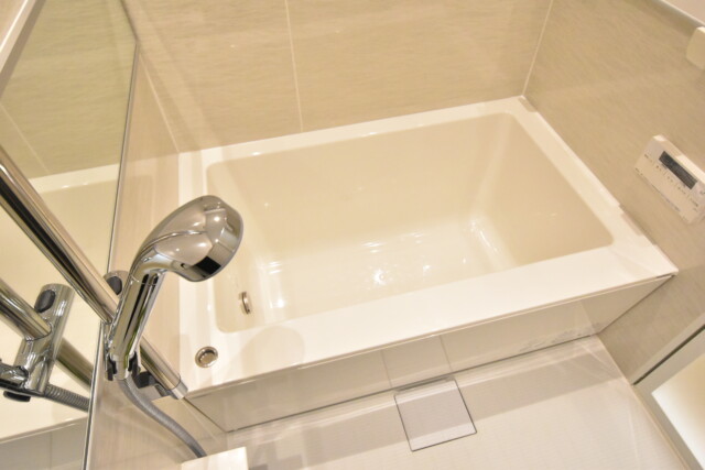 浴槽は追い炊き機能付。ご夫婦のご帰宅時間がバラバラでも、冷めたお風呂をワンタッチでお好みの温度に追い炊き可能です。