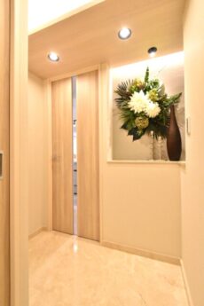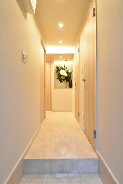 明るいインテリアカラーでまとめられた玄関です。玄関・廊下は高級感溢れる大理石貼りです!素敵ですね!!ピカピカと輝いています。