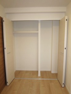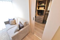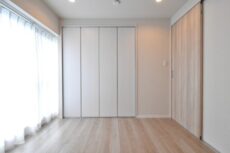 ほぼ正方形の形に加え、引き戸使用でデッドスペースもなく、レイアウトのしやすいお部屋です。クローゼットが付いていますので、室内に収納家具を置く必要もなさそうです。