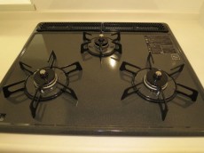 コンロは3口魚焼きグリル付です。Siセンサー付きなので安全安心です。