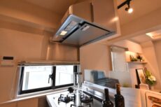 コンロ脇の窓の外はルーフバルコニーです。キッチンに窓があると換気・採光に最高!です(笑)