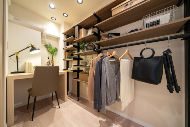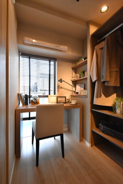 デスクや収納棚、ハンガーポールまで造り付けになった隠れ家的なお部屋です。趣味の部屋として、書斎として、使い道を考えるのが楽しみですね。在宅勤務にもぴったりです。