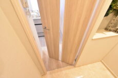中は洗面室でした。ナチュラルカラーで統一された、温かみのある洗面室です。