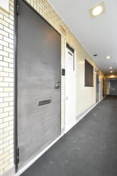お部屋の玄関前にきました。各住戸のドアにはエンブレムのレリーフが。さり気なくライオンズマンションであることを主張しています![]()