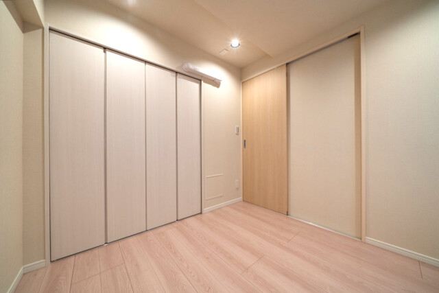 玄関横の洋室(約4.5帖)。コンパクトなつくりながら、収納はしっかりしています。