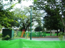 斜め前に公園があるのですが、整備工事中で入れませんでした…