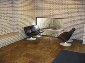 エントランスまわりは照明や、箱庭が見られる応接セットなど手が込んでいます。