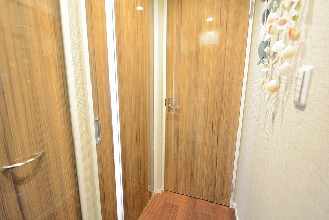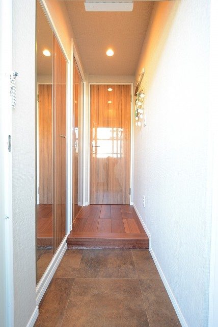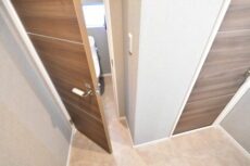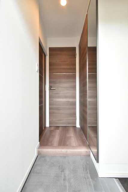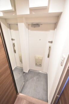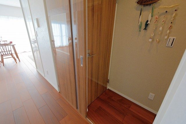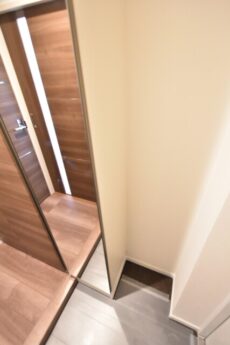 玄関側にある扉には姿見が設置されておりますので、お出かけ前にしっかりと身だしなみをチェックすることができますよ