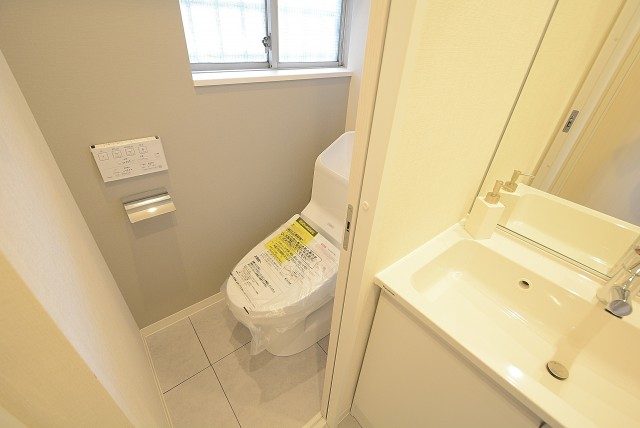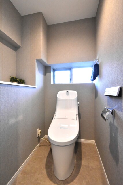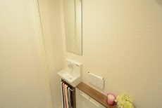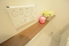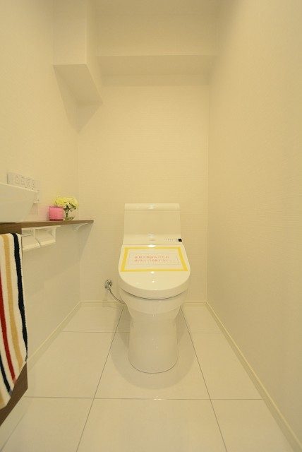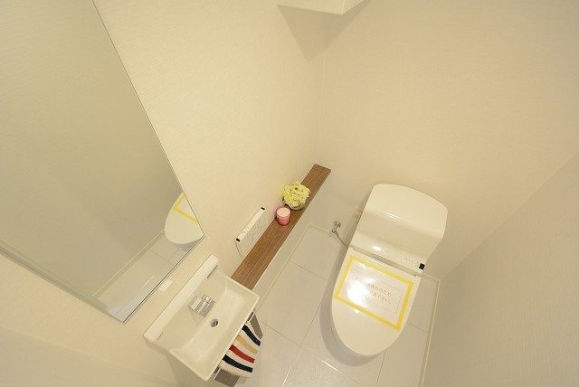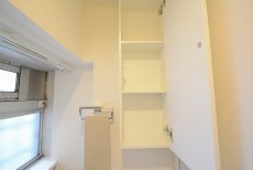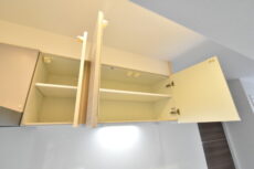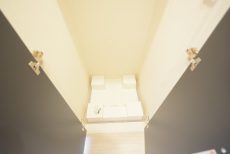 トイレには吊戸棚が付いているので、トイレットペーパー等の消耗品や掃除用品などはこちらに入れておきましょう!