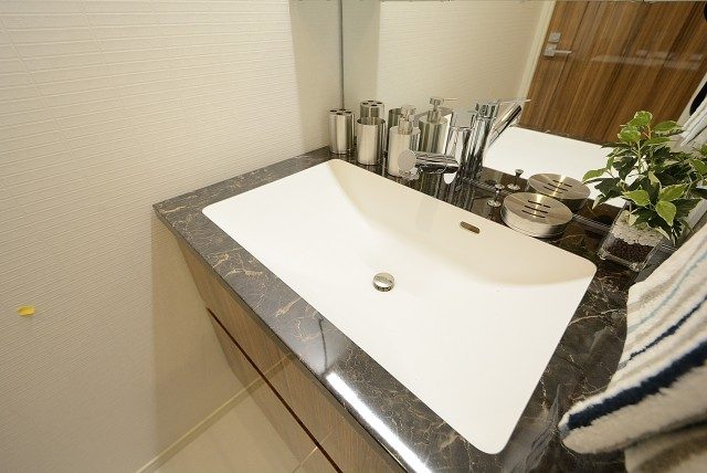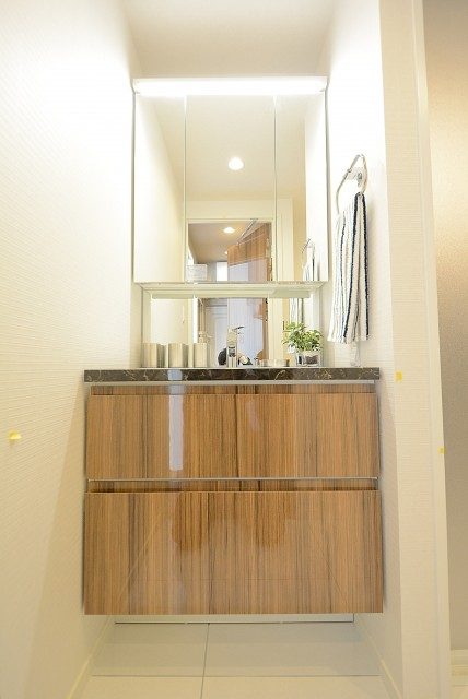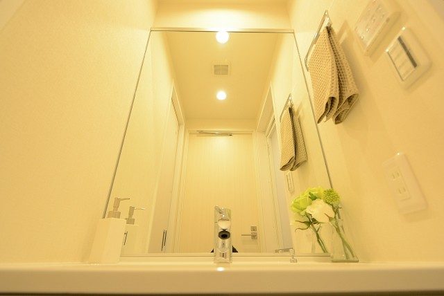 大きなミラーの付いた洗面化粧台は視認性もバツグンです。