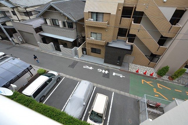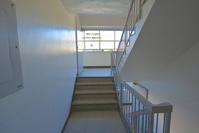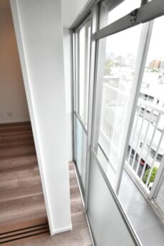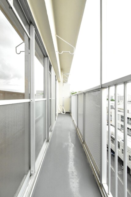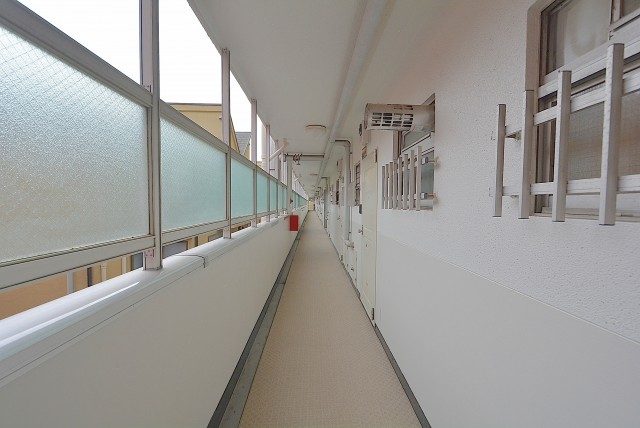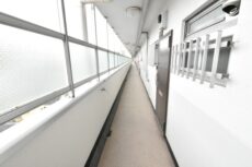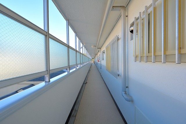 共用廊下は外部廊下ですが、目隠しが設置してあります。この目隠しは、雨の日に雨が降りこんでくるのも防いでくれそうです。