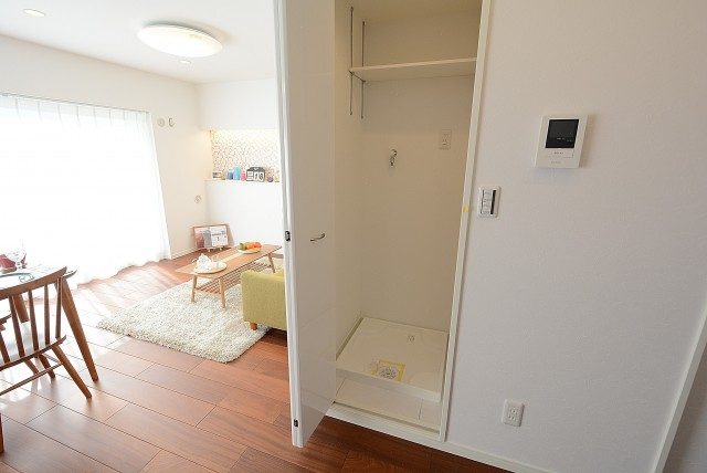リビングから見て廊下のすぐ左手には洗濯機置場があります。