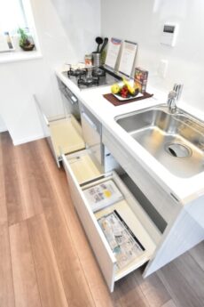 シンク下の収納も便利な引き出しタイプなので、取り出しもカンタンですよ!