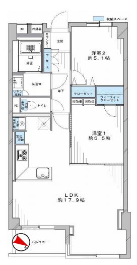 【洋室1:約2帖の大きなウォークインクローゼット】