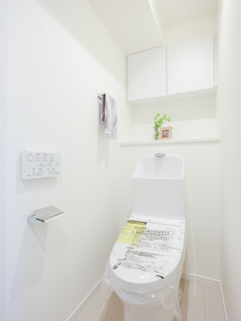 【トイレ:洗浄機能一体型・吊り戸棚付き】