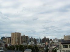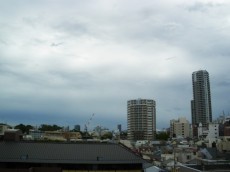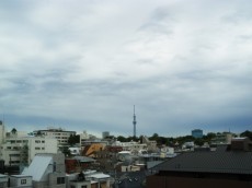 和室のバルコニー(北西側)の眺望。こんもりとしているのは、上野公園一帯の