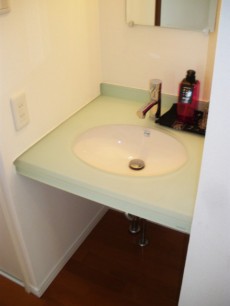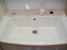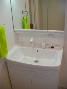 洗面化粧台はボウルが広々として、顔や手をバシャバシャ洗えそう。