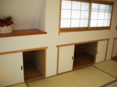 リビングダイニングとなりの和室(約6.5帖)。こちらも外壁に沿って下部が収納、