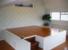 お部屋中央の台の上にマットレスを置いて、主寝室にするイメージでしょうか。