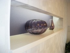 アクセントクロスに、壁面に配された飾り棚がラグジュアリーな雰囲気を