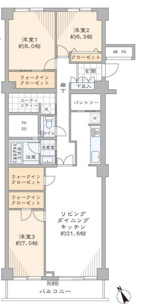 それでは間取りのご紹介です。3LDK+3WIC、106.89㎡。5階。