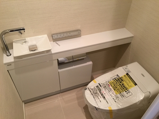 お隣りはトイレです☆お掃除がしやすいタンクレスタイプのウォシュレット付き♪♪