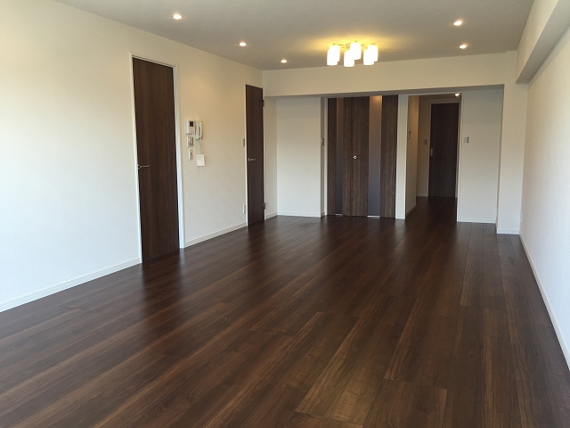 それでは廊下一番奥のリビングダイニングキッチンを見ていきましょう♫リビングダイニングキッチンは、約21.6帖。南向きの窓で明るさも充分。大きくシンプルなかたちのお部屋ですので、インテリアの配置次第で様々な表情を見せてくれると思います。飽きが来たら、模様替えでイメージチェンジ (●´∀`)