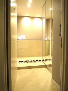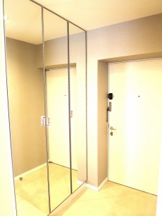 玄関を入ると右側に鏡張りの大きなシューズBOXがあります。