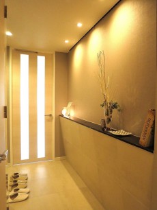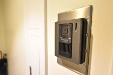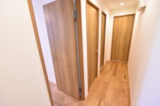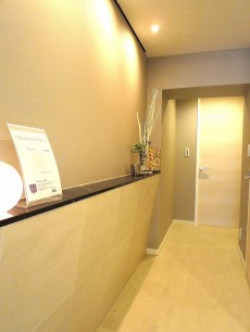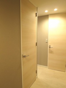 8階でエレベーターを降りるとコンパクトなホールには玄関が二つだけ。その中の一つが今回ご紹介するお部屋です。違うエレベーターに乗ったら辿り着かないんですね。酔っぱらって帰ったときには間違えないように気を付けましょう(笑)インターホンはモニター付きなので室内にいながら玄関前の様子が確認できますよ。