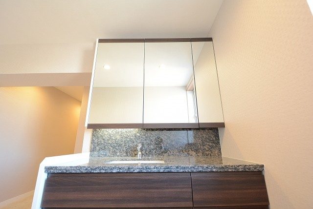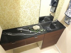 重厚な雰囲気が漂うこちらの洗面化粧台はなんと大理石仕様となっています。