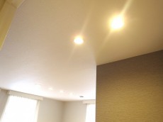 ダウンライトはお部屋の入口に2つ、お部屋の中央に3つ配置されていてムラなくてらします。