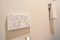 浴室換気乾燥機能付き。こちらのお部屋にはバルコニーがありませんので、これは助かりますね。干すためのポールも設置されていますよ。洗濯物の乾燥の他にも、ヒートショック予防に役立つ浴室乾燥や、暑い時期に嬉しい涼風などいろいろな機能があるのでどんどん使っていきましょう。