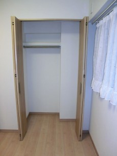 玄関横のサービスルーム(約4.0帖)。コンパクトなお部屋ですがしっかりと収納が