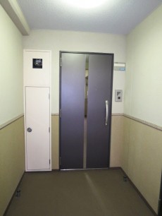 お部屋のドアは縦にミラーが入っています。完全な内廊下ではないですが、
