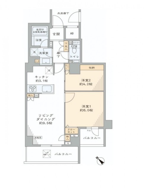 それでは間取りのご紹介です。2LDK、51.92㎡。