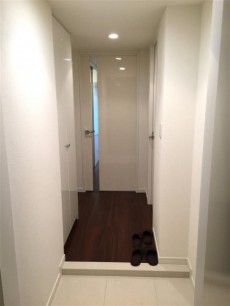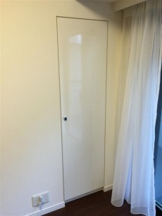 出入り口付近にも、間口が狭めの扉付きの収納も用意してあります。